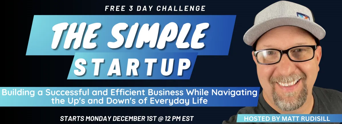 There are 2 ways to participate in "The Simple Startup" challenge. The General Admission Experience is FREE and the VIP Experience is only $197 for the exclusive VIP ticket, Zoom post-event Q&A, and VIP Coaching with Matt Rudisill where he can go into your exact situation.